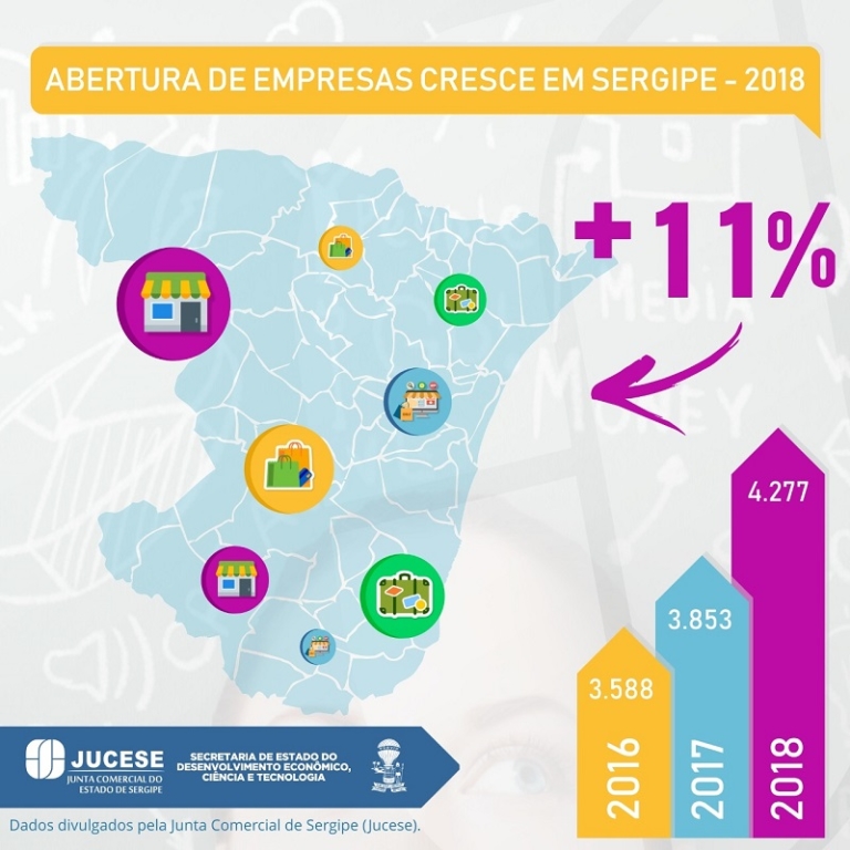 Ocupando atualmente a terceira colocação entre os Estados com o menor tempo para se abrir um negócio no Brasil – conforme o Ranking de Qualidade da Receita Federal -, Sergipe registrou durante o ano de 2018 a abertura de 4.277 novas empresas, segundo dados da Junta Comercial do Estado de Sergipe – Jucese. Trata-se de um aumento de 11% em relação a 2017.