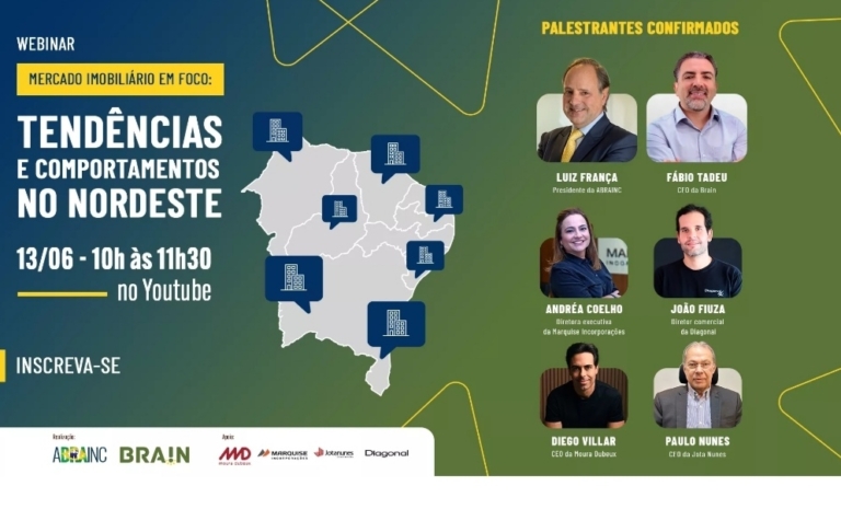 A Associação Brasileira de Incorporadoras Imobiliárias (Abrainc) e a Brain Inteligência Estratégica realizam o “Webinar Mercado Imobiliário em Foco: Tendências e Comportamentos no Nordeste”, que será realizado no próximo dia 13 de junho, a partir das 10 horas.