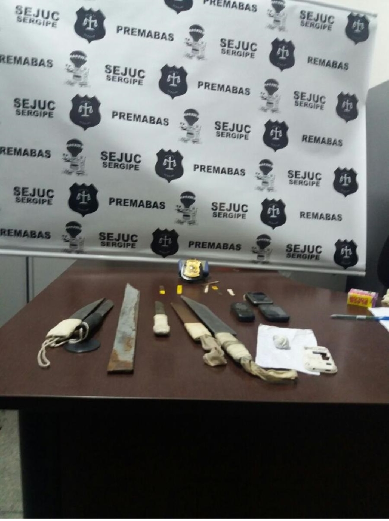 Na tarde de ontem, 5, durante revista realizada pelos agentes e guardas prisionais na Ala A do Pavilhão 3, no Presidio Regional Juiz Manoel Barbosa de Souza – Premabas -, em Tobias Barreto, foram encontradas 12 armas brancas, três celulares e uma pequena quantidade de drogas.