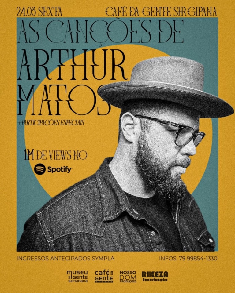 “Estamos preparando um show imperdível! No repertório, teremos músicas dos seus 7 álbuns, além de algumas surpresas. Será um espetáculo belo e intimista”, garante o artista. Os ingressos podem ser adquiridos no SYMPLA: https://www.sympla.com.br/arthur-matos-participacoes-show-as-cancoes-de-arthur-matos__1899983?share_id=0 ou pelo Pix via Whatsapp – (79) 99854-1330