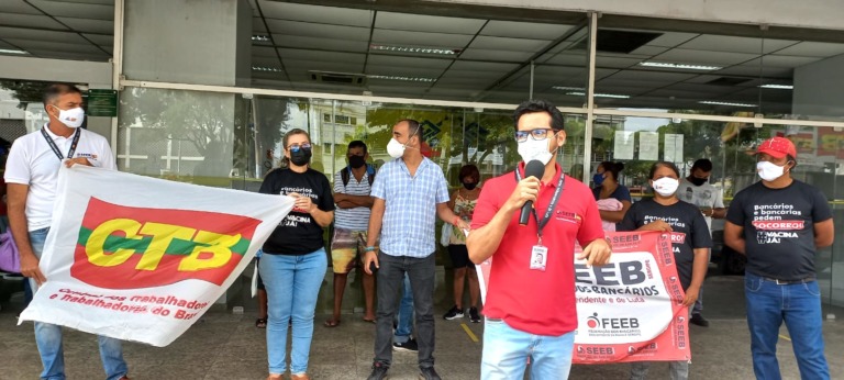 Na manhã desta quinta-feira, 27, o Sindicato dos Bancários de Sergipe realiza ato na porta da Superintendência do Banco do Brasil, situada na Praça General Valadão. O protesto iniciou às 8h, e teve como objetivo cobrar os protocolos sanitários contra a Covid-19.