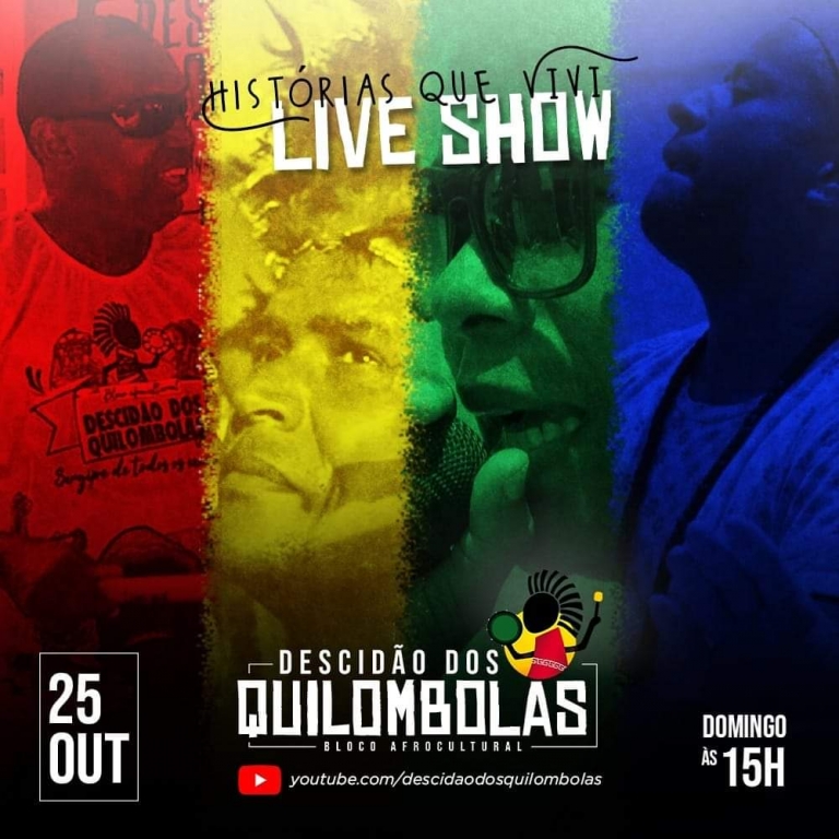 Em tempos de pandemia e com a necessidade dos grupos e agentes culturais de se reinventarem, o Bloco Descidão dos Quilombolas apresenta no dia 25 de outubro, domingo, às 15h, a live Histórias que Vivi, um resgate dos desafios, histórias, emoções e inspirações na busca por afirmações raciais e socioculturais através da história do samba-reggae sergipano.