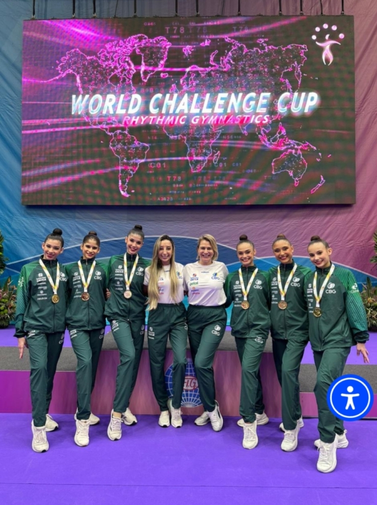 A Seleção Brasileira de Conjunto de Ginástica Rítmica rompeu mais uma barreira neste sábado, 10. Pela primeira vez, o Brasil foi campeão no all-around, que consiste na soma das notas das séries mista e simples de uma competição. A façanha foi alcançada na etapa de Portimão, em Portugal, da World Challenge Cup.