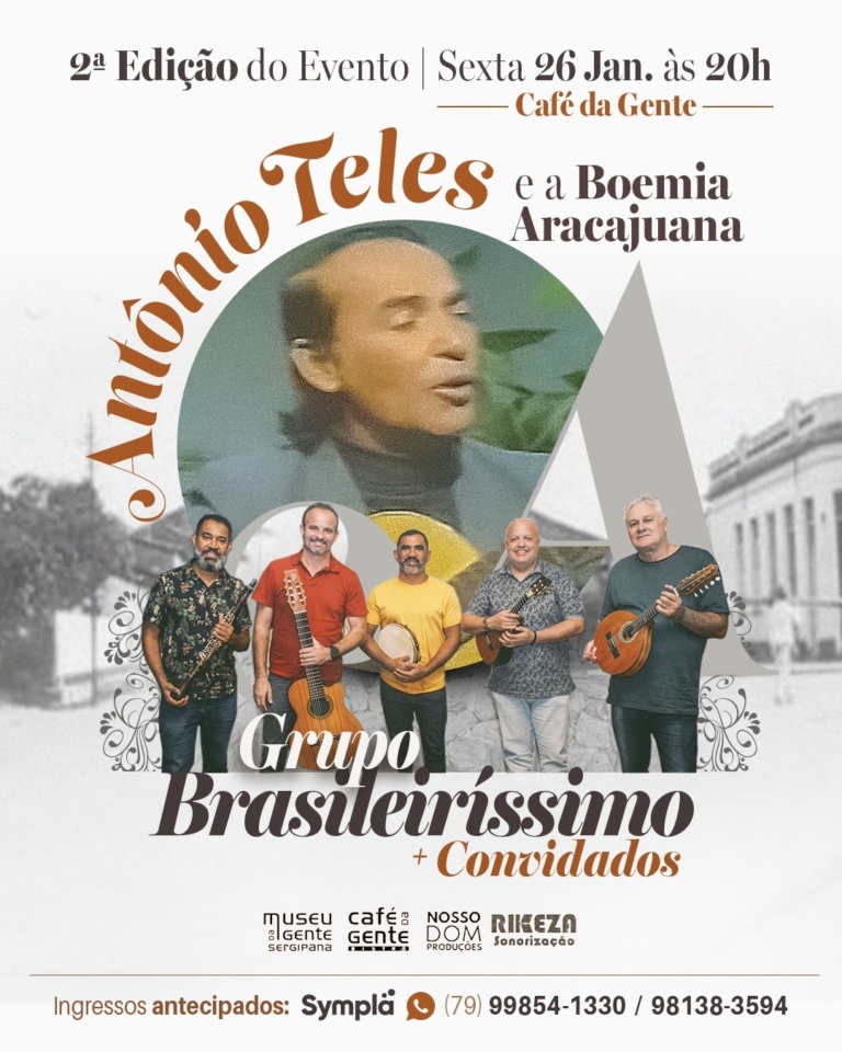 No próximo dia 26 de janeiro, sexta-feira, a cidade de Aracaju será palco de mais uma edição especial do projeto Antônio Teles e a Boemia Aracajuana. Após o sucesso da primeira edição, que encantou o público com música e emoção, esta segunda edição promete superar as expectativas, celebrando não apenas o projeto, mas também o aniversário do artista Antônio Teles.