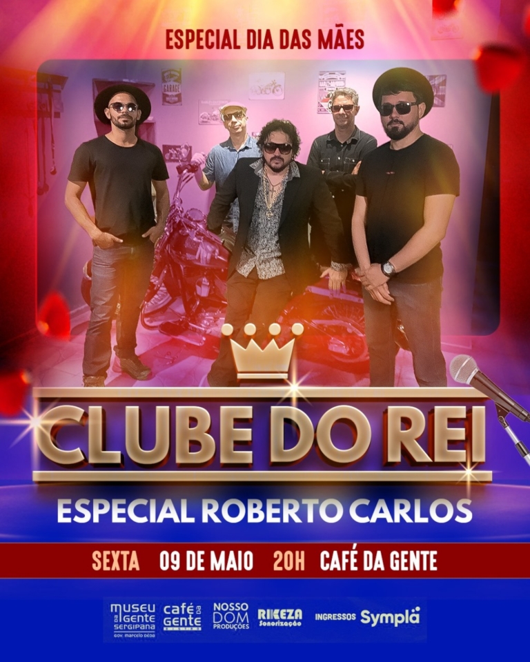 A banda Clube do Rei está de volta ao espaço cultural do Café da Gente Sergipana para uma noite inesquecível em homenagem ao Dia das Mães. O show especial acontece na sexta-feira, 9 de maio, às 20h, e promete emocionar o público com os clássicos eternos de Roberto Carlos em um clima de afeto, memórias e celebração.