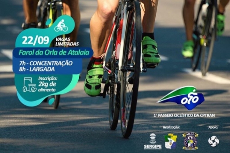 Em comemoração à Semana Nacional de Trânsito, a Companhia de Policiamento de Trânsito – CPTran – da Policia Militar do Estado de Sergipe realiza o 1º Passeio Ciclístico da CPTran. O evento esportivo acontece no próximo domingo, 22, na Orla da Praia de Atalaia, na capital sergipana, e a entrega dos kits de participação aos regularmente inscritos será realizada na loja Centauro do Shopping Jardins, na sexta-feira, 20, e neste sábado, 21, das 10h às 22h.