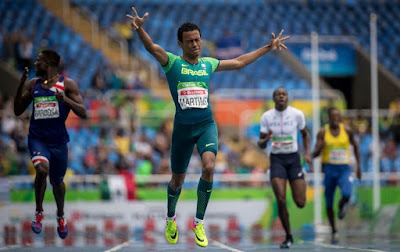 Ricardo Costa, 34, conquistou ouro no salto em distância. Com a marca de 6,52m, obtida em sua última tentativa, Ricardo Costa tornou-se o primeiro brasileiro campeão Paralímpico nos Jogos Rio 2016. A conquista do ouro no salto em distância da classe T11 foi muito comemorada. Ele chegou à sua sexta e última tentativa com a prata garantida – tinha saltado 6,43m e estava atrás do americano Lex Gillette, que tinha marcado 6,44m em seu quinto salto. Mas alcançou 6,52m para conquistar o ouro histórico. O bronze foi para o ucraniano Ruslan Katyshev, que saltou 6,20m.