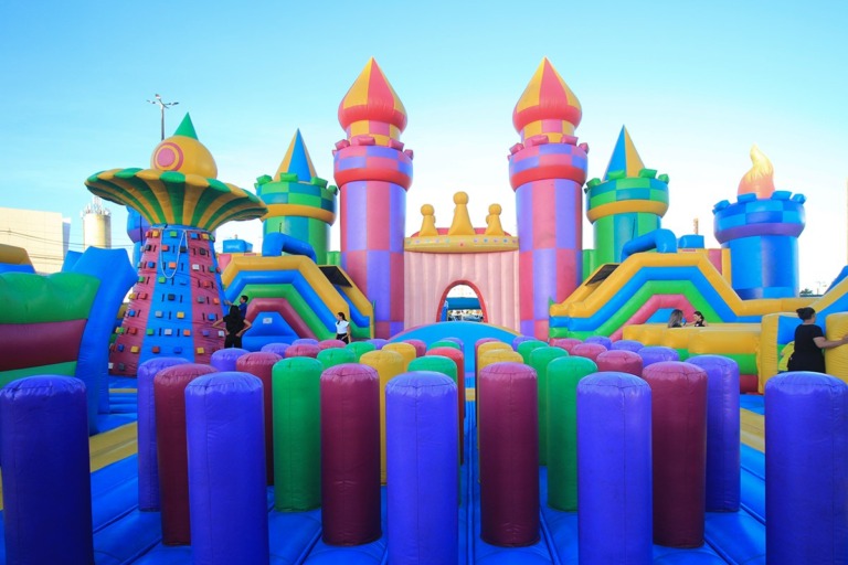 O quê? Maior castelo inflável da América Latina com circuitos, atividades e desafios para crianças, jovens e adultos.