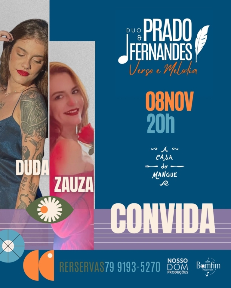 O diálogo entre a música e a palavra ganha um novo palco em Aracaju. O Duo Prado & Fernandes — formado pelo guitarrista e compositor Sérgio Prado e pelo poeta, cantor e performer J. Victor Fernandes — inicia sua temporada semanal do projeto “Verso e Melodia – Convida” na Casa do Mangue, aos sábados, sempre às 20h. A proposta une repertório instrumental, canções nacionais e internacionais e poesia falada, criando uma atmosfera sensível, acolhedora e vibrante.