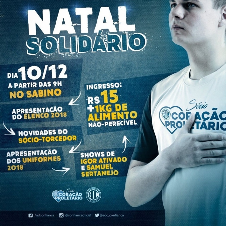 O anúncio será feito durante o Natal Solidário do Confiança. Os ingressos para a festa já começaram a ser vendidos e podem ser adquiridos no Sabino Ribeiro e no Shopping do Dragão ao preço de R$ 15 e mais 1kg de alimento não perecível, que será entregue no dia da festa. Este mantimento arrecadado será distribuído para instituições de caridade da capital, que terão um fim de ano mais feliz.