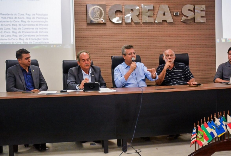 A reunião contou com a presença do presidente do Conselho Regional de Corretores de Imóveis – CRECI-SE -, Sérgio Sobral; do presidente do Conselho Regional de Engenharia e Agronomia – CREA-SE -, Arício Resende; do presidente do Conselho Regional de Psicologia – CRP -, Naldson Melo; do vice-presidente do Conselho Regional de Medicina Veterinária – CRMV -, Carlos Sarmento; do presidente do Conselho Regional dos Representantes Comerciais no Estado – Core -, Emerson Natal; do presidente do Conselho Regional de Economia – Corecon -, Aldo Melo; e de Claudia Sorge, representante do Conselho Regional de Fonoaudiologia – Crefono.