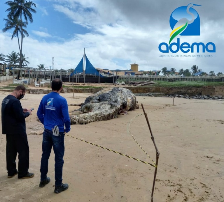 Na manhã deste domingo, 25, uma equipe de fauna da Administração Estadual do Meio Ambiente – Adema –, foi acionada para auxiliar na ação de identificação de uma baleia que se encontrava encalhada nas proximidades de um resort, na Praia da Costa, no município da Barra dos Coqueiros, no Território da Grande Aracaju.