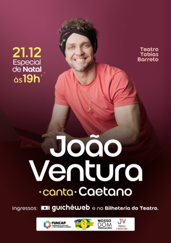 O cantor, pianista e compositor sergipano João Ventura retorna a Aracaju com o espetáculo “Especial de Natal – João Ventura Canta Caetano”, no sábado, 21 de dezembro, às 20h, no Teatro Tobias Barreto. Aclamado pelo público e pela crítica, o concerto tem rodado as principais casas de show e teatros do país, e chega especialmente a Aracaju para mais um encontro já tradicional com o público sergipano, reunindo emoção, sofisticação e a beleza das canções de Caetano Veloso sob o olhar singular de Ventura.