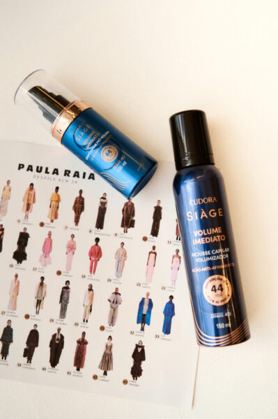A proposta da beleza, criada por Jake Falchi, destaca fios com textura e presença, em sintonia com a atmosfera do desfile e com a estética da estilista. No backstage, a linha Eudora Siàge Volume Imediato será protagonista na preparação dos cabelos que irão cruzar a passarela.