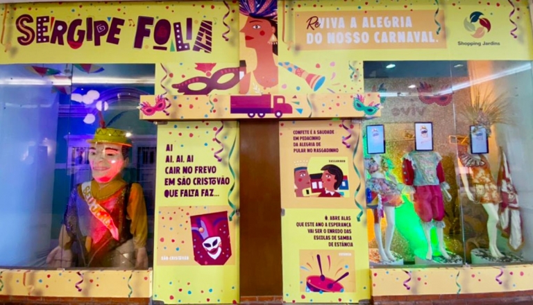 A gerente de Marketing do Shopping Jardins, Acácia Sandes, explica que a homenagem está sendo realizada em vitrines temáticas que exaltam o colorido, a musicalidade e as riquezas do carnaval sergipano. “Mantemos os protocolos sanitários para acolher as famílias com segurança e preparamos uma exposição contemplativa que enaltece a nossa cultura e a beleza das tradicionais festas de Sergipe”, afirma.