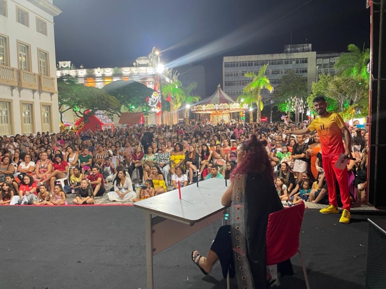 Em seguida, o mestre anuncia a primeira equipe homenageando Machado de Assis, com a coreografia “Terno Morto”, protagonizadas pelos alunos da 2C, concretizando o encontro da literatura com a música. A partir daí, o palco do Natal Iluminada vira cenários para mais de 200 alunos empenhados em conquistar o Prêmio Vitrine Literária. “Hoje, a praça é da Escola Pública, preparem os seus corações”, entoa Fabiano, chamando ao palco “Tieta do Agreste”, encenada pelos alunos da 2º F.