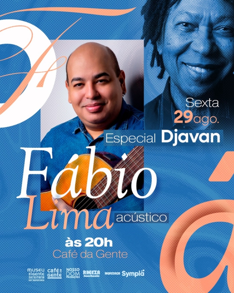 Na sexta-feira, 29 de agosto, às 20h, o espaço cultural do Café da Gente Sergipana, anexo ao Museu da Gente Sergipana, recebe o show “Fábio Lima Acústico – Especial Djavan”, mais um momento marcante da trajetória de um dos grandes intérpretes da música popular brasileira. Neste novo projeto, Fábio homenageia o inconfundível Djavan, recriando com arranjos especiais e interpretação singular algumas das mais belas e emblemáticas canções de sua carreira.Contaremos ainda com a participação mais que especia de Chiko Queiroga.