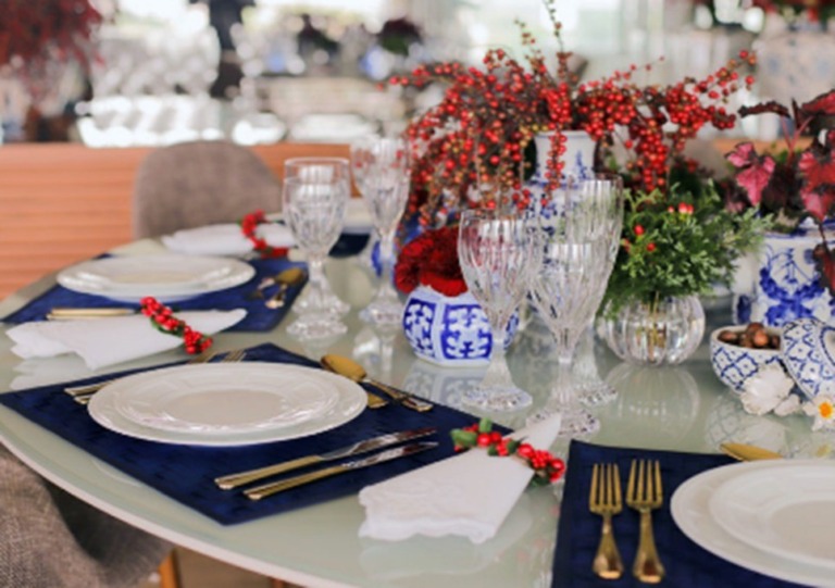 Uma sugestão é utilizar as cores que compõem o estilo _Navy_ juntamente com objetos clássicos ou que você já tem. Assim, você pode compor um ambiente com a sua personalidade. “Para evidenciar o estilo escolhido, as decorações da mesa são fortes aliadas”, complementa Déborah.