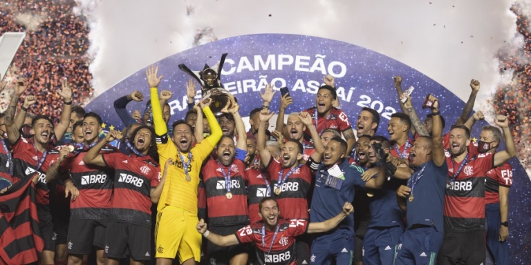 Festa rubro-negra! O Flamengo é o campeão do Brasileirão Assaí de 2020! Nesta quinta-feira 25, o líder da competição visitou o São Paulo, no Morumbi, e acabou sendo derrotado por 2 a 1. No entanto, com o empate sem gols do Internacional com o Corinthians, em Porto Alegre, a equipe carioca manteve a vantagem na tabela de classificação e terminou a 38ª rodada com 71 pontos – um a mais que o time gaúcho. Com o triunfo, o Tricolor se garantiu na fase de grupos da próxima edição da Libertadores, com 66 pontos, na quarta posição.