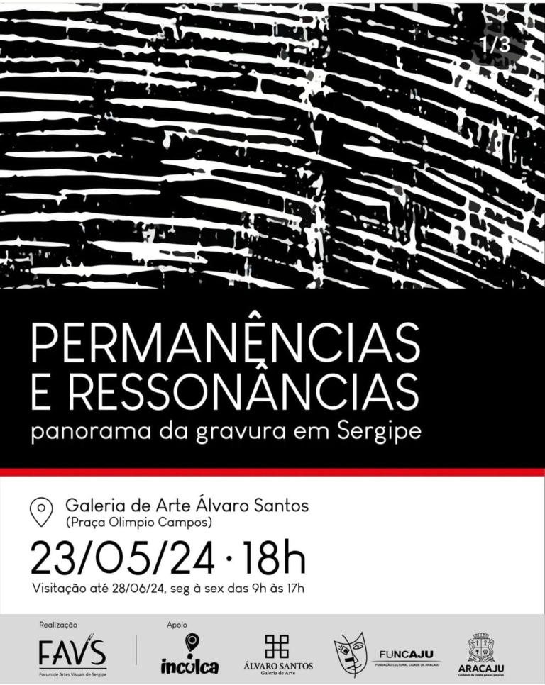 Com o propósito de contribuir para a memória das artes visuais no Estado e ressaltar a importância da transmissão do conhecimento através do ato de gravar, o Fórum de Artes Visuais de Sergipe – FAVs, apresenta a exposição Permanências e Ressonâncias: panorama da gravura em Sergipe, com abertura na quinta-feira, 23 de maio, às 18h, na Galeria de Arte Álvaro Santos.