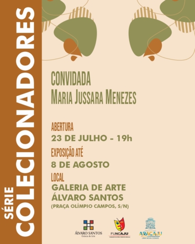 Dia 23, quarta, 19 h, abre mais uma exposição da Série Colecionadores, que tem a proposta de trazer acervos particulares para a Galeria de Arte Álvaro Santos, criando oportunidade única do público estar em contato com obras nunca antes vistas. Esta edição está pra lá de especial. Pela primeira vez teremos uma convidada mulher, Jussara Menezes.