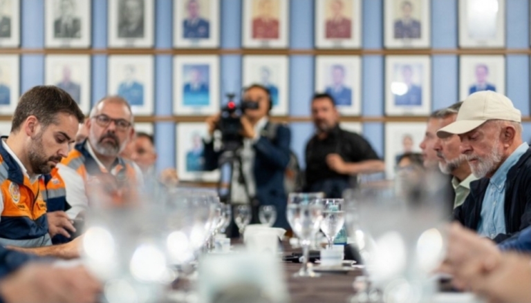 O governador Eduardo Leite reuniu-se na manhã desta quinta-feira, 2, com o presidente Luiz Inácio Lula da Silva e uma equipe de ministros na Base Aérea de Santa Maria, na Região Central do Estado. Leite apresentou um panorama dos efeitos do evento meteorológico de proporções históricas que atingiu o Rio Grande do Sul e das ações de salvamento que estão em curso.