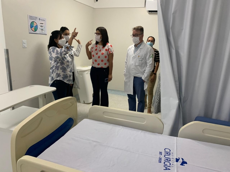 Na manhã desta sexta-feira, 18, o Hospital de Cirurgia recebeu a visita da secretária de Estado da Saúde, Mércia Feitosa, – acompanhada por equipe técnica da Secretaria de Estado da Saúde – SES –, para formalizar a reativação de 10 leitos de Unidade de Terapia Intensiva (UTI) e oito leitos de clínica médica Covid-19, para tratar pacientes do Sistema Único de Saúde – SUS.