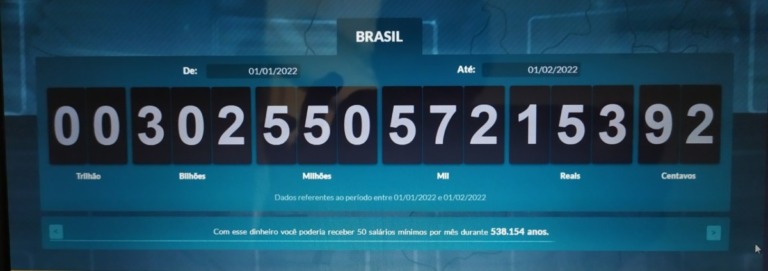 Impostômetro registra R$ 300 bi na madrugada de 1º de fevereiro