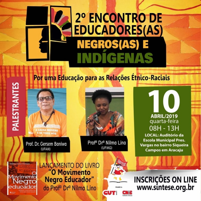 O Sindicato dos Trabalhadores em Educação Básica da Rede Oficial do Estado de Sergipe – Sintese – realiza no próximo dia 10 de abril, das 8h às 13h, no auditório da Escola Municipal Presidente Vargas, o 2º Encontro de Educadores(as) Negros(as) e Indígenas.