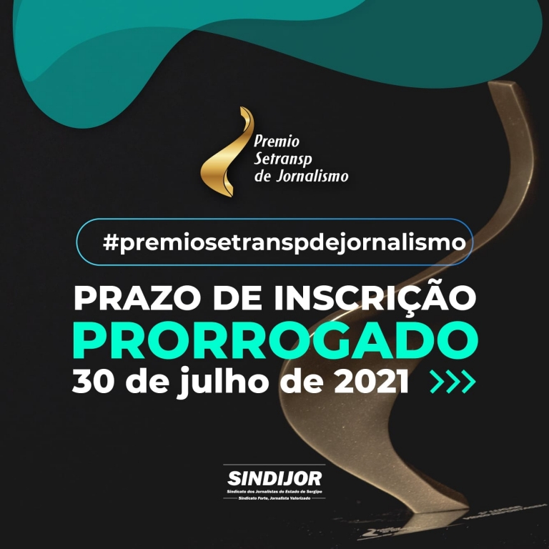 O Prêmio Setransp de Jornalismo foi prorrogado até o dia 30 de julho de 2021. O tema geral deste ano é “Sustentabilidade para Mobilidade de Todos” e podem concorrer trabalhos de jornalistas profissionais veiculados em órgãos da imprensa – rádio, televisão, jornal, revista, site jornalístico, situados no Estado de Sergipe, além de estudantes universitários.