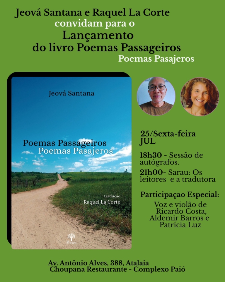 “Poemas Passageiros” teve a sua primeira edição lançada em 2011, com o apoio da Universidade Estadual de Alagoas (Ufal), onde o autor trabalha. De acordo com Jeová, nesta nova edição, os 92 poemas foram traduzidos para o espanhol pela professora Raquel La Corte.