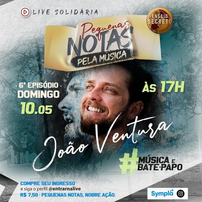 Garanta seu ingresso no Sympla e, com pequenas notas, faça uma nobre ação: https://www.sympla.com.br/pequenas-notas-pela-musica—episodio-6—joao-ventura__848099. Mais informações também estão disponíveis através do Instagram @pequenasnotaspelamusica.