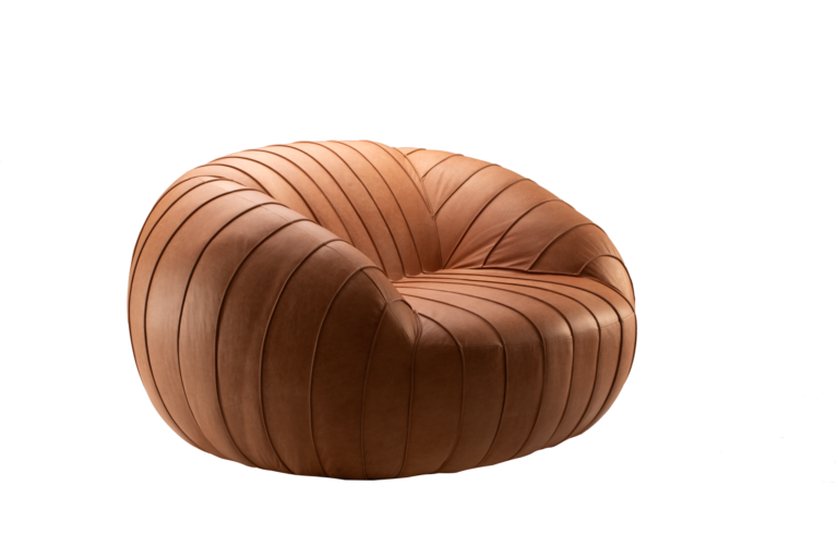 Essa memória afetiva foi a referência para Larissa Batista criar a poltrona. Com inspiração nas margaridas seu design curvilíneo e orgânico traz a sensação de um abraço com cheiro adocicado e toque acolhedor. Traz feminilidade e robustez capaz de proporcionar conforto único.