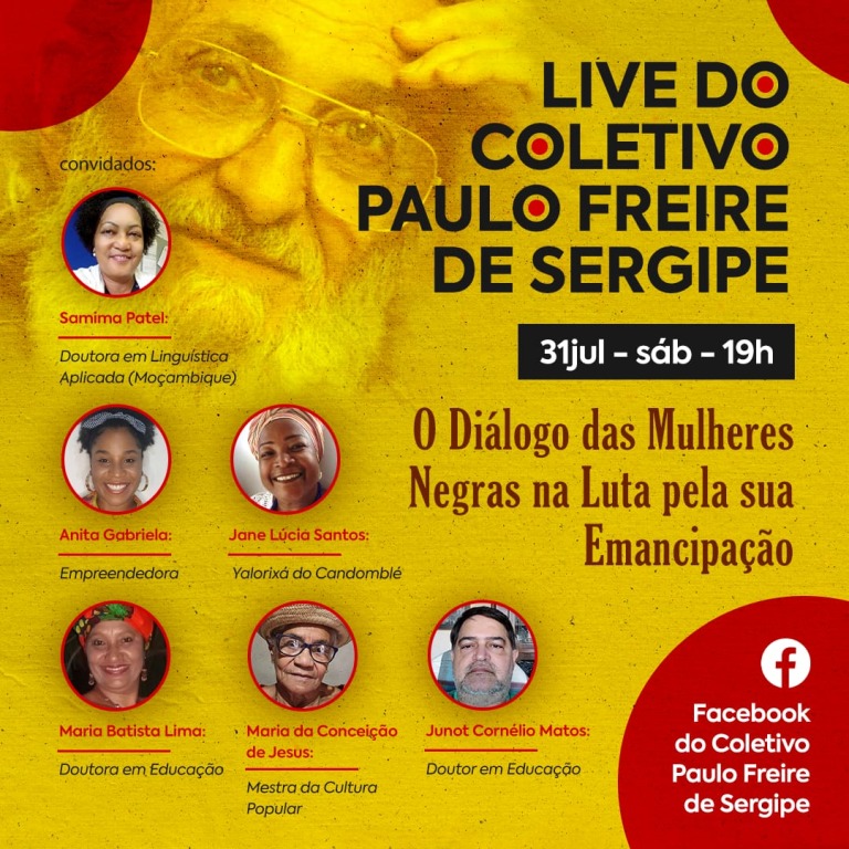 Neste sábado, 31, às 19h, será realizada a Live do Coletivo Paulo Freire de Sergipe, com a abordagem do tema “O Diálogo das Mulheres Negras na luta pela sua Emancipação”.