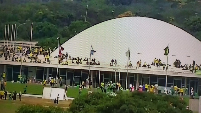 Manifestantes apoiadores do ex-presidente Jair Bolsonaro inconformados com o resultado das eleições invadiram o Congresso Nacional, o Palácio do Planalto e o Supremo Tribunal Federal (STF). A invasão começou após a barreira formada por policiais militares na Esplanada dos Ministério, que estava fechada, ter sido rompida. O Congresso Nacional foi o primeiro a ser invadido, com os manifestantes ocupando a rampa e soltando foguetes. Depois eles quebraram vidro do Salão Negro do Congresso e danificaram o plenário da Casa.