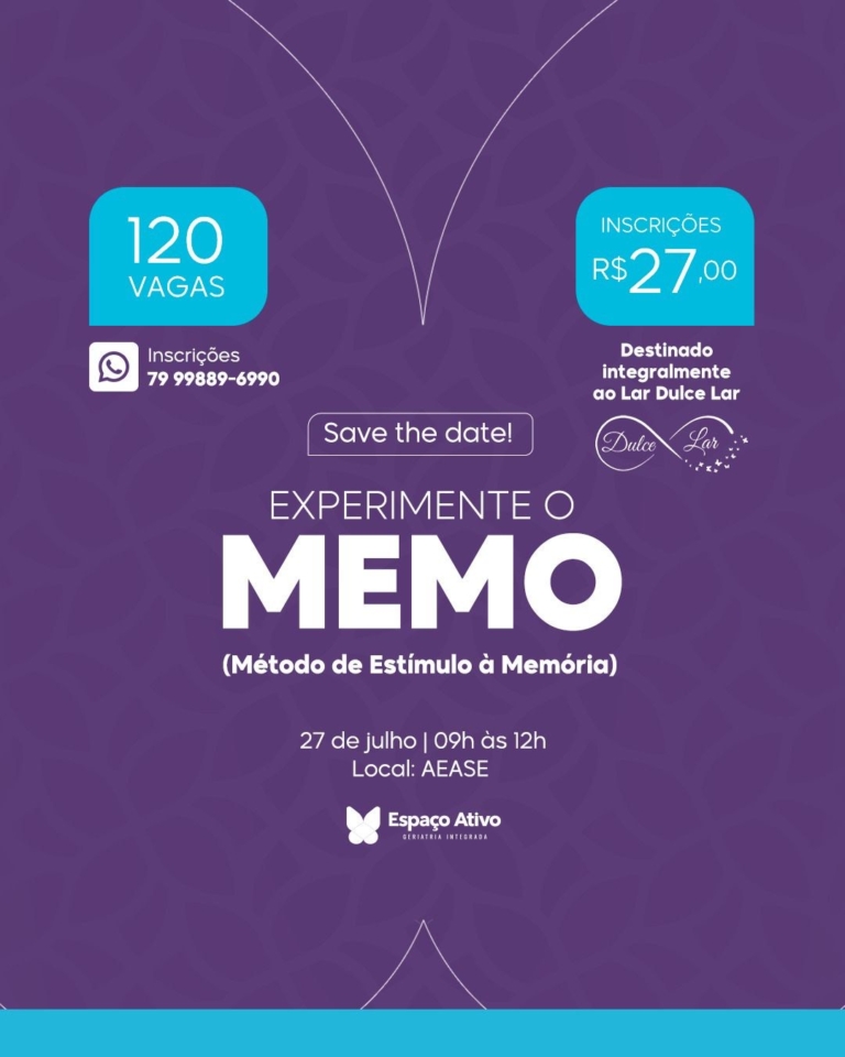 Aracaju recebe no próximo sábado, 27, mais uma edição do Experimente o Memo (Método de Estimulação da Memória), através de um workshop onde o público poderá aprender com práticas a prevenir transtornos cognitivos como a doença de Alzheimer.