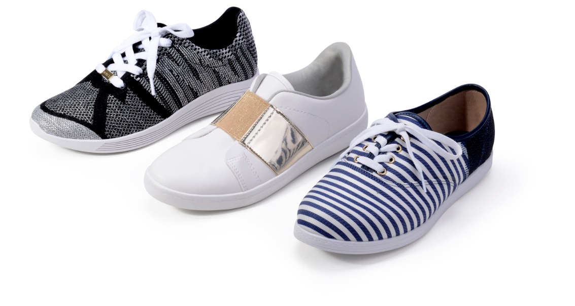 Os modelos casuais são feitos de napa, a exemplo da turim. E os esportivos têm tecido tear spot, que garantem conforto e estilo as mulheres. Os detalhes são metalizados e dão mais brilho e feminilidade as produções.