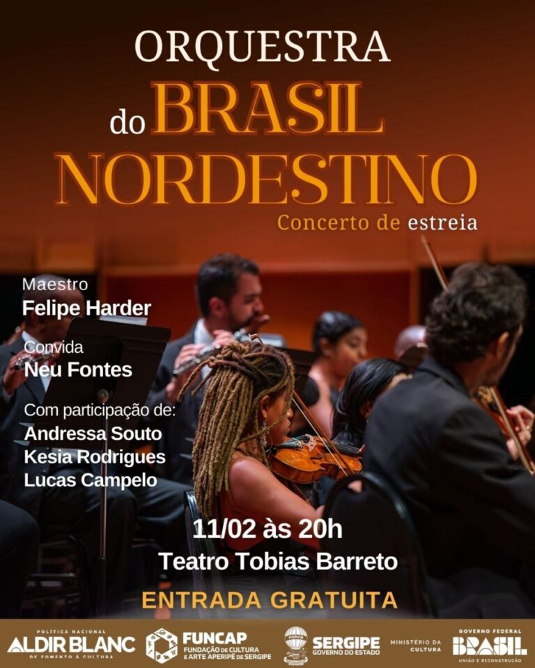 No dia 11 de fevereiro, às 20h, o Teatro Tobias Barreto abre as portas para o concerto de estreia da Orquestra do Brasil Nordestino, novo grupo sinfônico sergipano criado para celebrar e projetar a cultura nordestina nos palcos do país. A apresentação será gratuita e marca o início da trajetória da orquestra, que já tem circulação prevista em estados como São Paulo, Bahia e Alagoas.