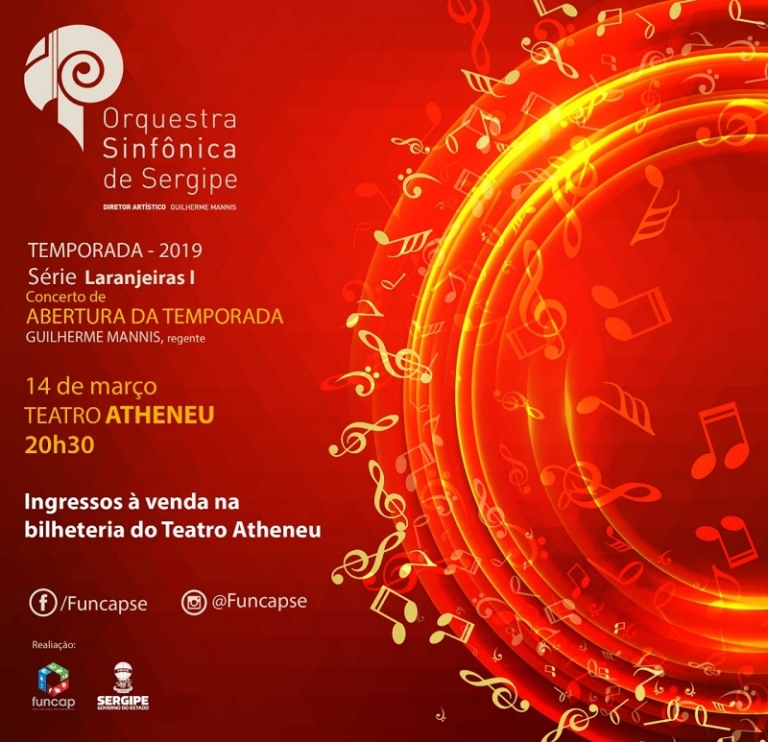 Na próxima quinta-feira, 14, a Orquestra Sinfônica de Sergipe – Orsse – dará início a Temporada 2019, com a Série Laranjeiras I, sob a regência do maestro Guilherme Mannis.