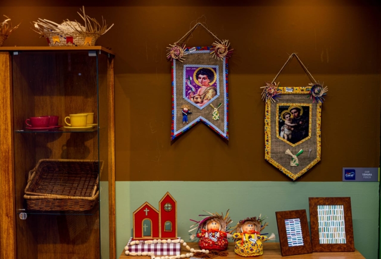 aparador e cômodos. Do maior ao menor, os elementos das festas juninas podem proporcionar uma celebração divertida e acolhedora na residência.