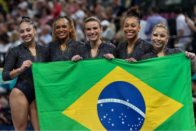 Rebeca Andrade, Flavia Saraiva, Jade Barbosa, Lorrane Oliveira e Julia Soares escreveram seus nomes na história olímpica do nosso país. Com nota 164.497, conquistaram o mais valioso dos bronzes, a primeira medalha por equipes da ginástica artística brasileira, no feminino. Ficaram atrás apenas dos Estados Unidos, com 171.296, e da Itália, com 165.494.
