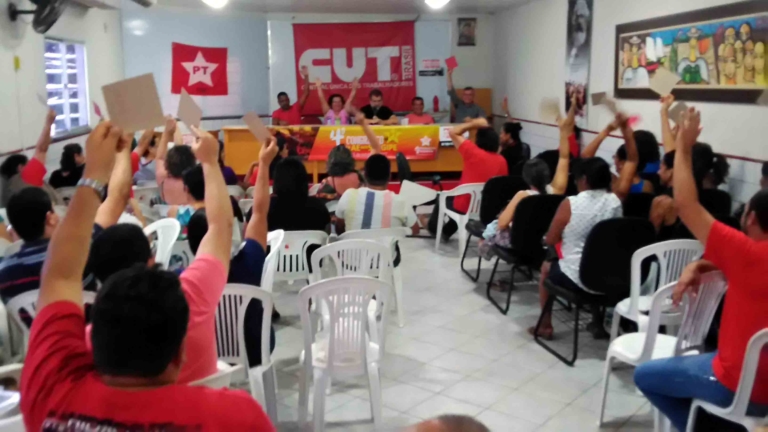 A Articulação de Esquerda, AE, tendência interna do Partido dos Trabalhadores, PT, realizou no sábado, 21, no auditório da Central Única dos Trabalhadores – CUT -, o 4° Congresso em Sergipe. Durante o evento, os delegados tomaram diversas decisões, entre elas a de que o PT lance candidatura própria para disputar o Governo estadual. Também ficou definida a defesa de que o PT lance chapa completa para disputar o Senado. Além disso, foi decidida a apresentação da pré-candidatura do Professor Dudu como indicação da Articulação de Esquerda para disputar o Governo do Estado em nome do PT nas eleições 2018. Outra definição foi a apresentação da pré-candidatura do Professor Joel como indicação da AE para integrar a chapa petista que disputará o Senado. Segundo a Articulação de Esquerda, caso o grupo majoritário na Direção Estadual do PT insista em apoiar ou fazer parte da chapa do atual governador, a AE disputará as prévias previstas no estatuto partidário. A AE também contribuirá para que o PT tenha uma forte chapa para disputar a Câmara dos Deputados e a Assembleia Legislativa, com a apresentação da Professora Ângela como pré-candidata à Câmara dos Deputados, e do professor Iran como pré-candidato à Assembleia Legislativa. De acordo com a Articulação de Esquerda, nos próximos dias será divulgado um documento com as bases programáticas das pré-candidaturas e o convite a toda a militância para o lançamento conjunto. No Congresso, foi ainda eleita a delegação sergipana que irá participar do 4° Congresso Nacional da AE e realizada a segunda etapa da Conferência Eleitoral da AE. (Foto: Divulgação / Ascom Articulação de Esquerda)