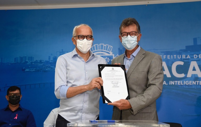 O prefeito Edvaldo Nogueira e o presidente da Federação do Comércio de Bens, Serviços e Turismo de Sergipe – Fecomércio/SE –, Laércio Oliveira, lançaram, na manhã desta segunda-feira, 18, o Natal Iluminado 2021. Em solenidade realizada na sede da Prefeitura, eles apresentaram o projeto arquitetônico para a decoração do Centro da capital, com o tema “Magia e Renovação”, que contará, este ano, com 4,5 milhões de pontos de luz, voltando a se concentrar nas praças Fausto Cardoso, Olímpio Campos e Almirante Barroso, e terá, como grande novidade a ‘Parada de Natal’. Serão investidos mais de R$ 2 milhões na ornamentação. Durante o ato, Edvaldo e Laércio assinaram o convênio 01/2021 que formaliza a realização do evento natalino.