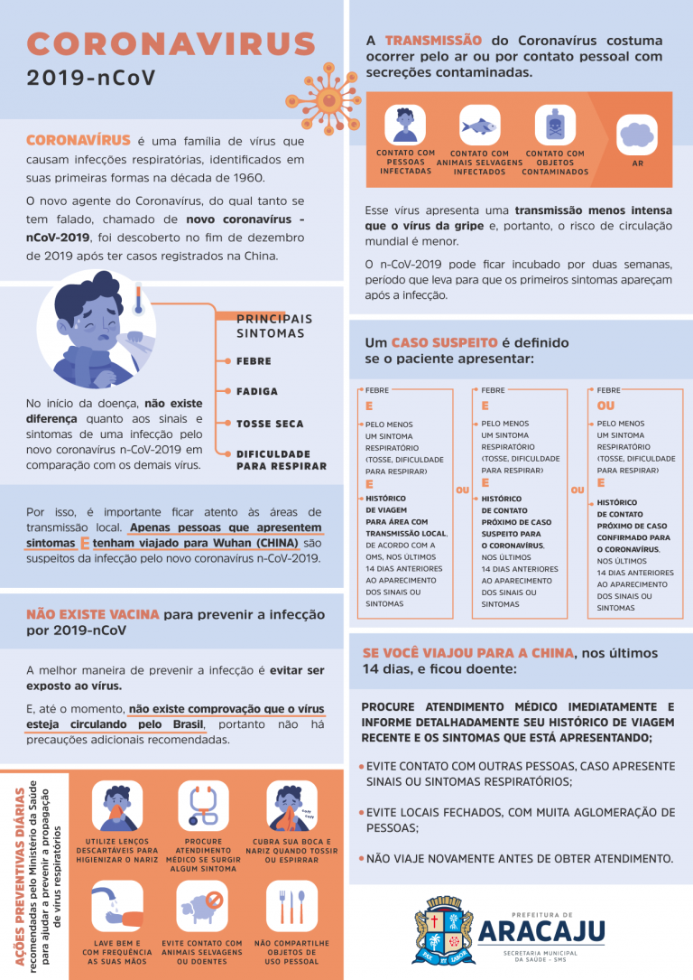 Outro cuidado importante é notificar os órgãos públicos sobre a chegada de pessoas que estiveram em locais de transmissão do vírus. Aqui em Aracaju, por meio da notificação, a Vigilância Epidemiológica da SMS poderá monitorar e orientar essas pessoas sobre como proceder. É possível entrar em contato com a Secretaria Municipal da Saúde através dos telefones 3711-5062/5048 ou ainda através do 9 8107-5020.