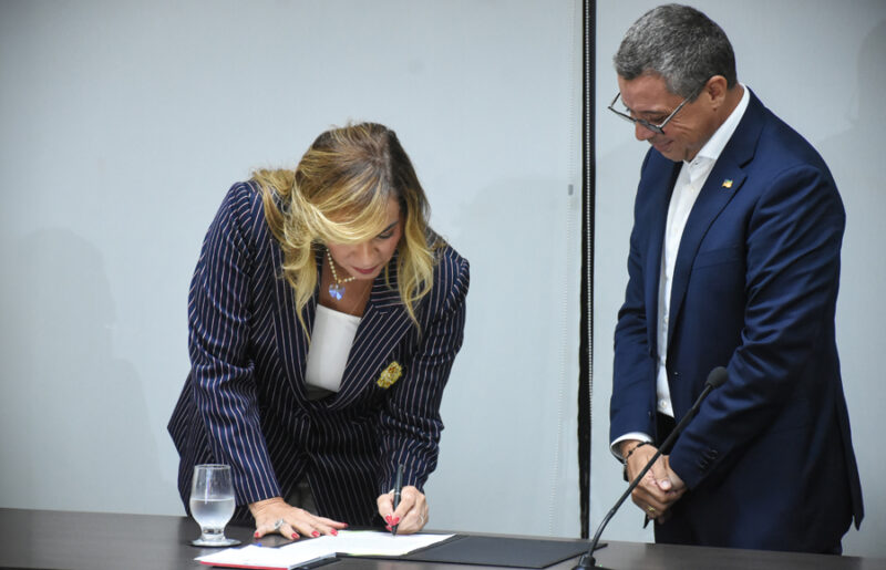 Desembargadora Iolanda Guimarães assina o termo de posse ao lado do governador Fábio Mitidieri – Fotos Raphael Faria – Dicom TJSE