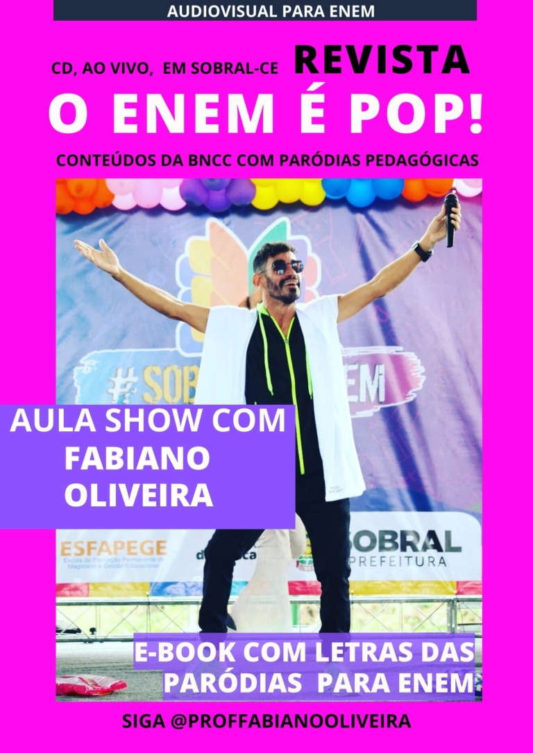 O CD gravado pelo professor traz versões pedagógicas de Beyoncé, Ivete Sangalo, Margareth Menezes, Marília Mendonça e tantas outras divas da Música pop! Pensando em se aproximar ainda mais do público estudantil, será disponibilizado no Youtube do Professor a gravação ao vivo do CD gravado em Sobral, município referência nacional em educação e quando se fala em Educação, Fabiano Oliveira é referência tendo suas metodologias apresentadas em programas da Rede Globo.Para facilitar os estudos, a revista O Enem é pop traz as letras das paródias analisadas de forma simples pelo próprio professor, além de rápidos estudos dirigidos para que professores e alunos possam revisar. Com cores vibrantes e diagramação moderna, o projeto audiovisual une os conteúdos da BNCC ao que há de mais contemporâneo dentro das metodologias ativas, bem ao gosto do mestre sergipano. “Quis presentear alunos e mestres que fazem a escola no Brasil e já penso em fazer o volume 2. Tenho muito material pronto para ser lançado e muitas novidades deverão ser lançadas para o Enem 2024”.