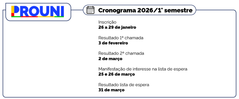 Confira o cronograma do Prouni 2026/1: