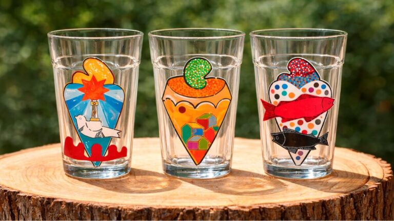 E os copos merecem atenção especial! As peças foram desenvolvidas com ilustrações que unem o caju a outros símbolos culturais da região, todas assinadas por Fábio Sampaio, artista radicado em Sergipe conhecido pelo traço vibrante e pela sensibilidade com que retrata a cultura nordestina.