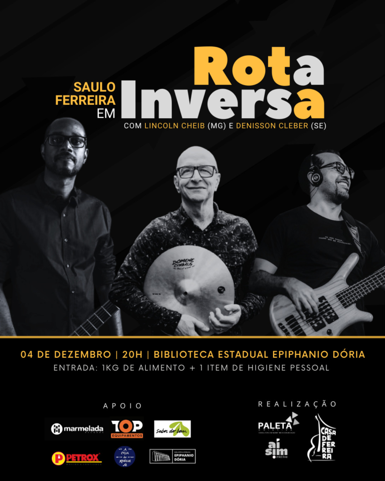 Nesta primeira edição, Saulo convida dois músicos de grande relevância: o contrabaixista sergipano Denisson Cleber, amigo e parceiro de longa data, e o baterista mineiro Lincoln Cheib, que por décadas integrou a banda do cantor Milton Nascimento. Juntos, eles apresentam um show instrumental no dia 4 de dezembro, às 20h, no auditório da Biblioteca Pública Estadual Epiphanio Dória, instituição que tem sido parceira constante das ações produzidas pelo artista desde 2022.