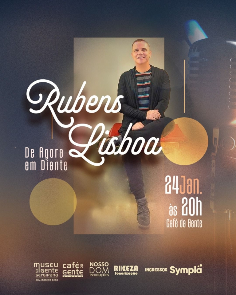 Após um sucesso estrondoso na última temporada do Café da Gente Sergipana, em dezembro do ano passado, o cantor e compositor Rubens Lisboa retorna ao palco com seu mais novo espetáculo, “De Agora em Diante”, nessa sexta-feira, dia 24 de janeiro, às 20h, no mesmo espaço cultural que recebeu de braços abertos seu talento e carisma.